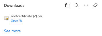 First, go to the remote access URL for the Xbox in Edge followed by /config/rootcertificate (ex. https://<System IP>:11443/config/rootcertificate) to download the rootcertificate.cer file.